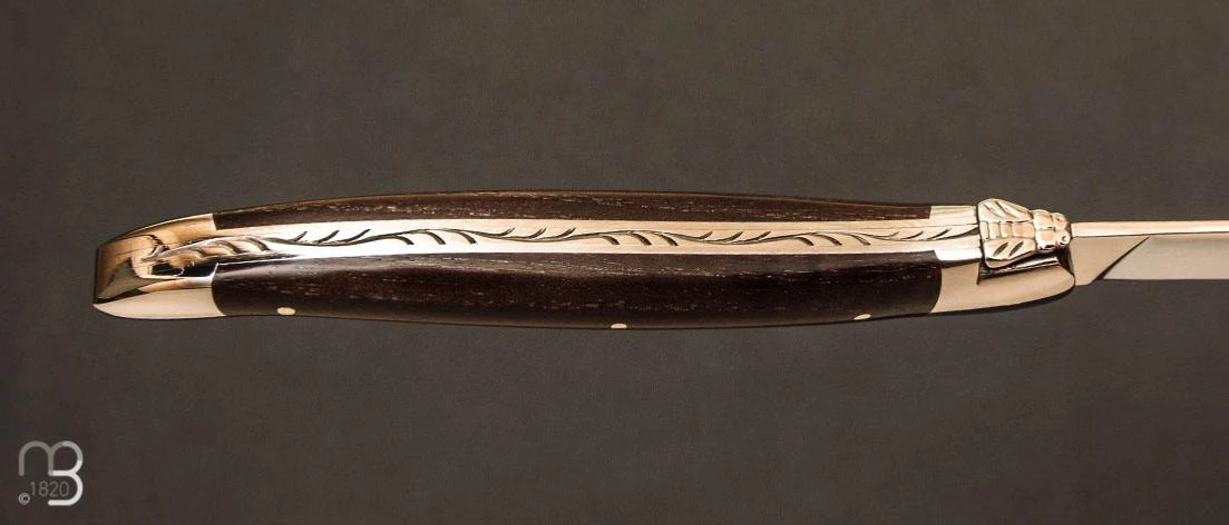 Manches en frêne densifié, avec mitres en acier inoxydable brillante.