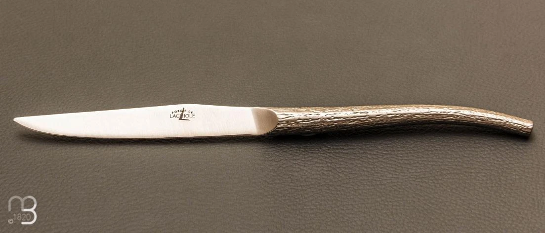 Le LOG a un manche en inox estampé à froid, comme une racine minérale que la lame semble fendre ou déchirer de façon naturelle.