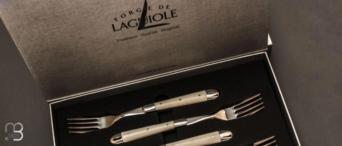 Coffret De 6 Couteaux De Table LAGUIOLE Manches Chêne Fossilisé Lame Brillante Par Forge De Laguiole