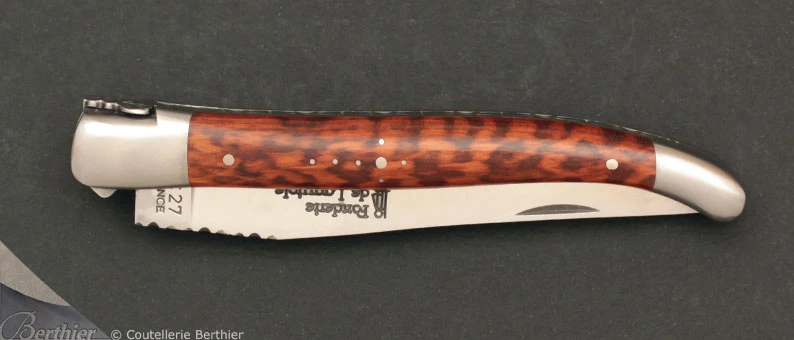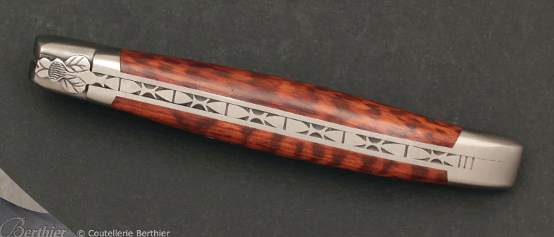Manche en amourette avec mitres en acier inoxydable.
