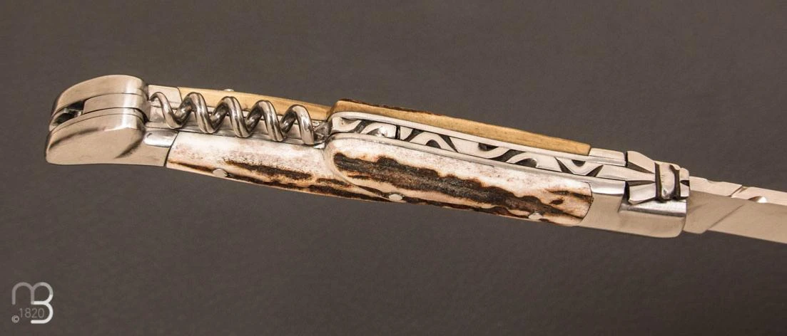 Couteau » Laguiole Berthier » 3 pièces 12 cm bois de cerf.