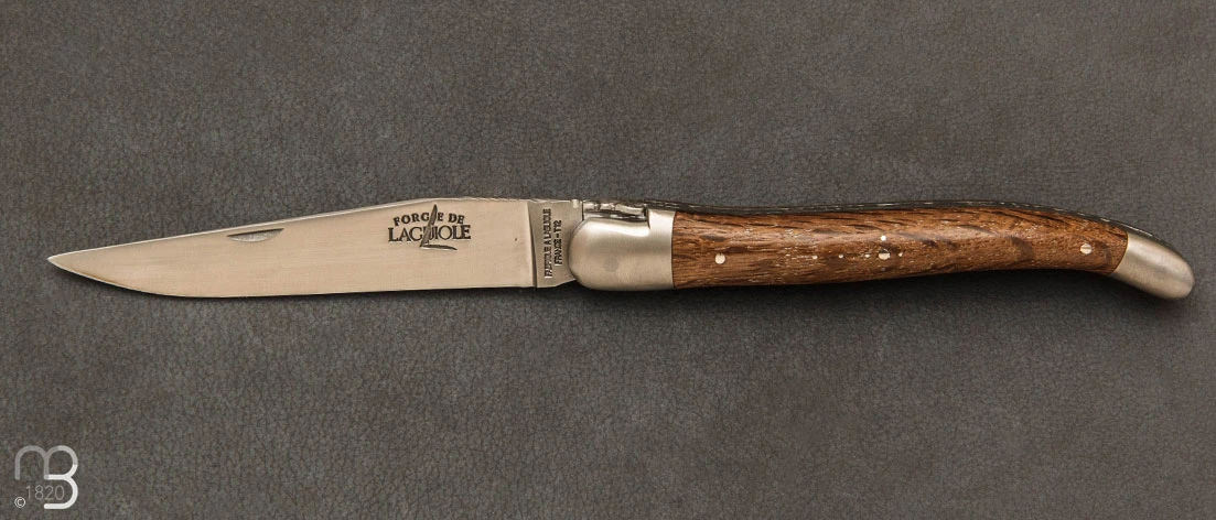 Manche en chêne fossilisé, mitres en acier inoxydable.