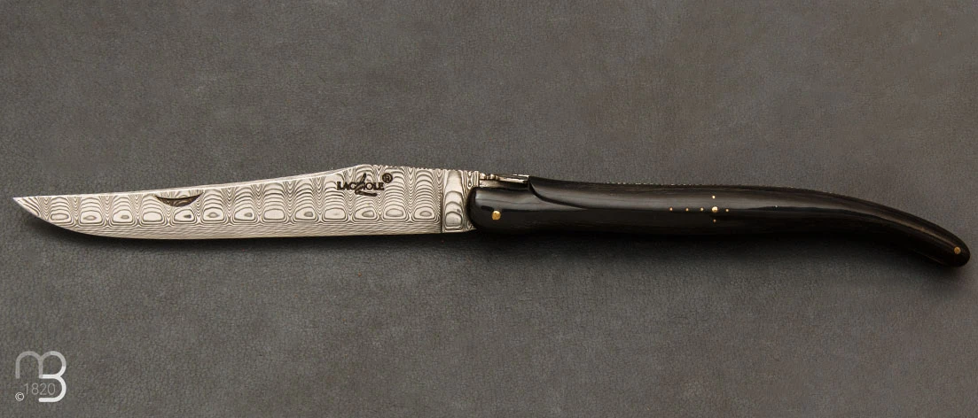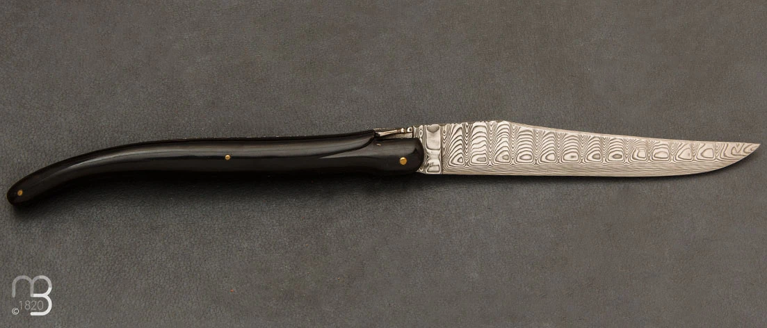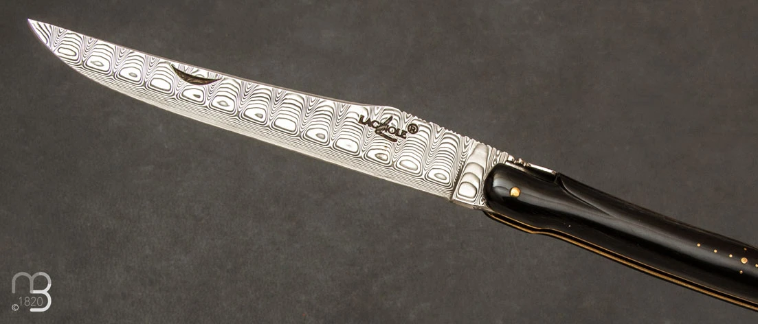 Lame avec onglet en acier damas inoxydable.
