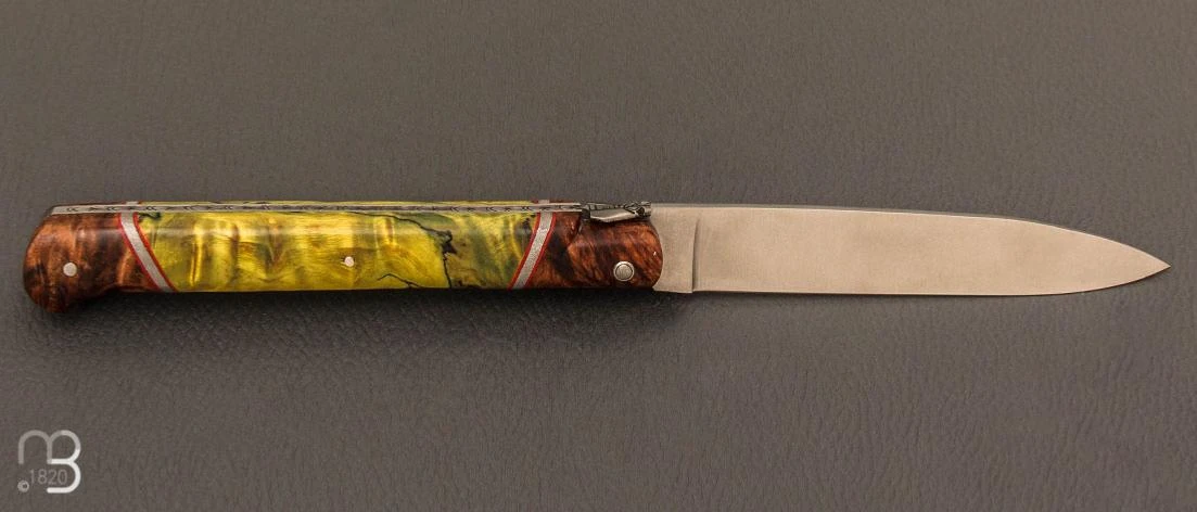 Plein manche en loupe d’aulne et peuplier vert avec liserés