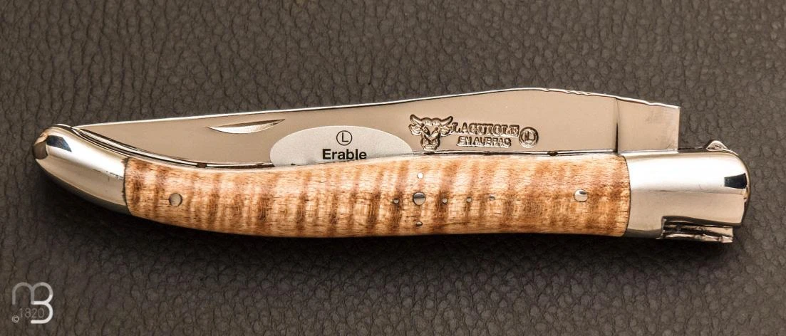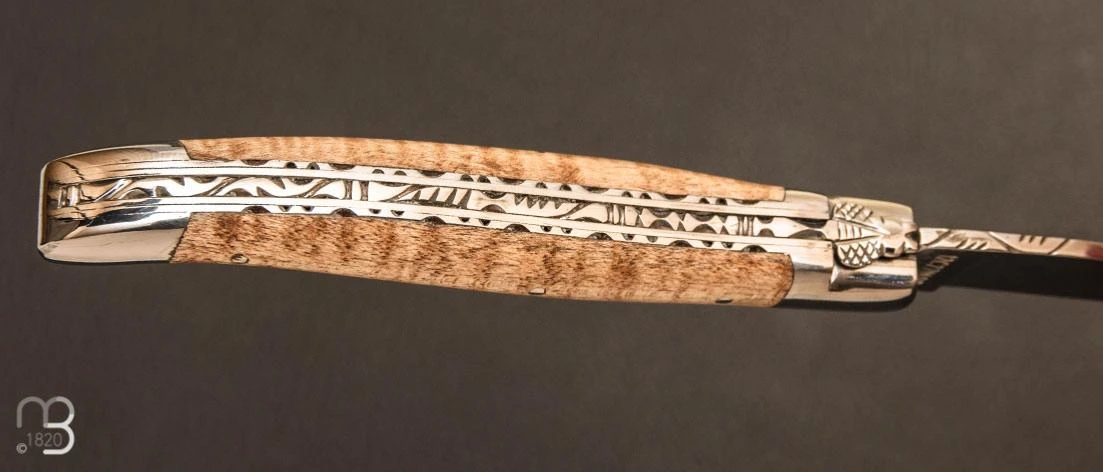 Manche composé de plaquettes en érable ondé, longueur 120 mm.