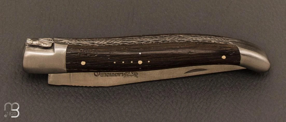 Coffret De 6 Couteaux De Table LAGUIOLE Manches Chêne Fossilisé Lame Brillante Par Forge De Laguiole