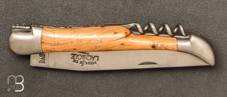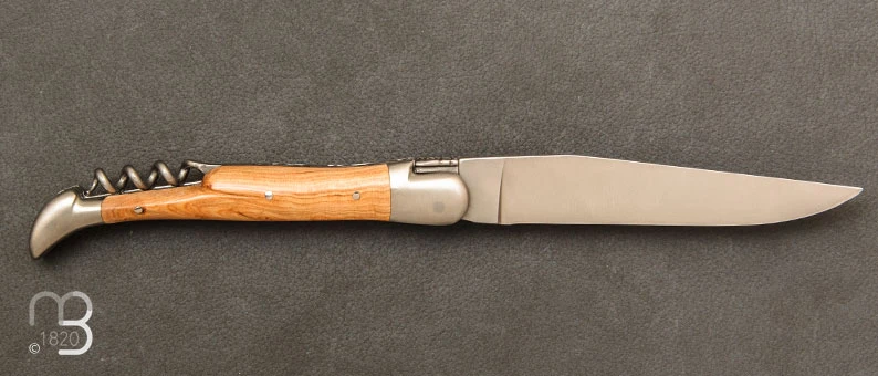 Longueur manche 120 mm, essence plaquettes genevrier.