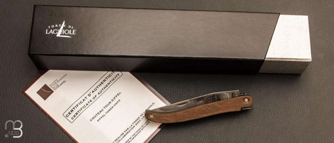 La Mairie de Paris et la S.E.T.E ont autorisé pour cette collaboration patrimoniale exceptionnelle et originale avec La Forge de Laguiole, l’utilisation d’acier (fer puddlé) de 1889 avec sa couleur d’origine pour la fabrication des manches des couteaux.