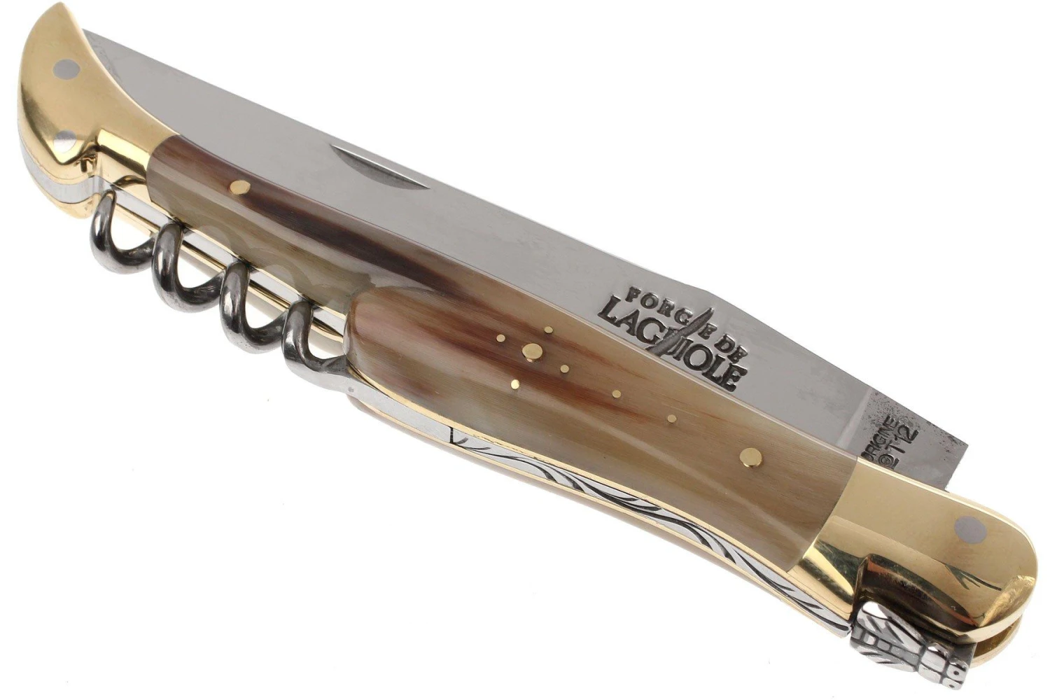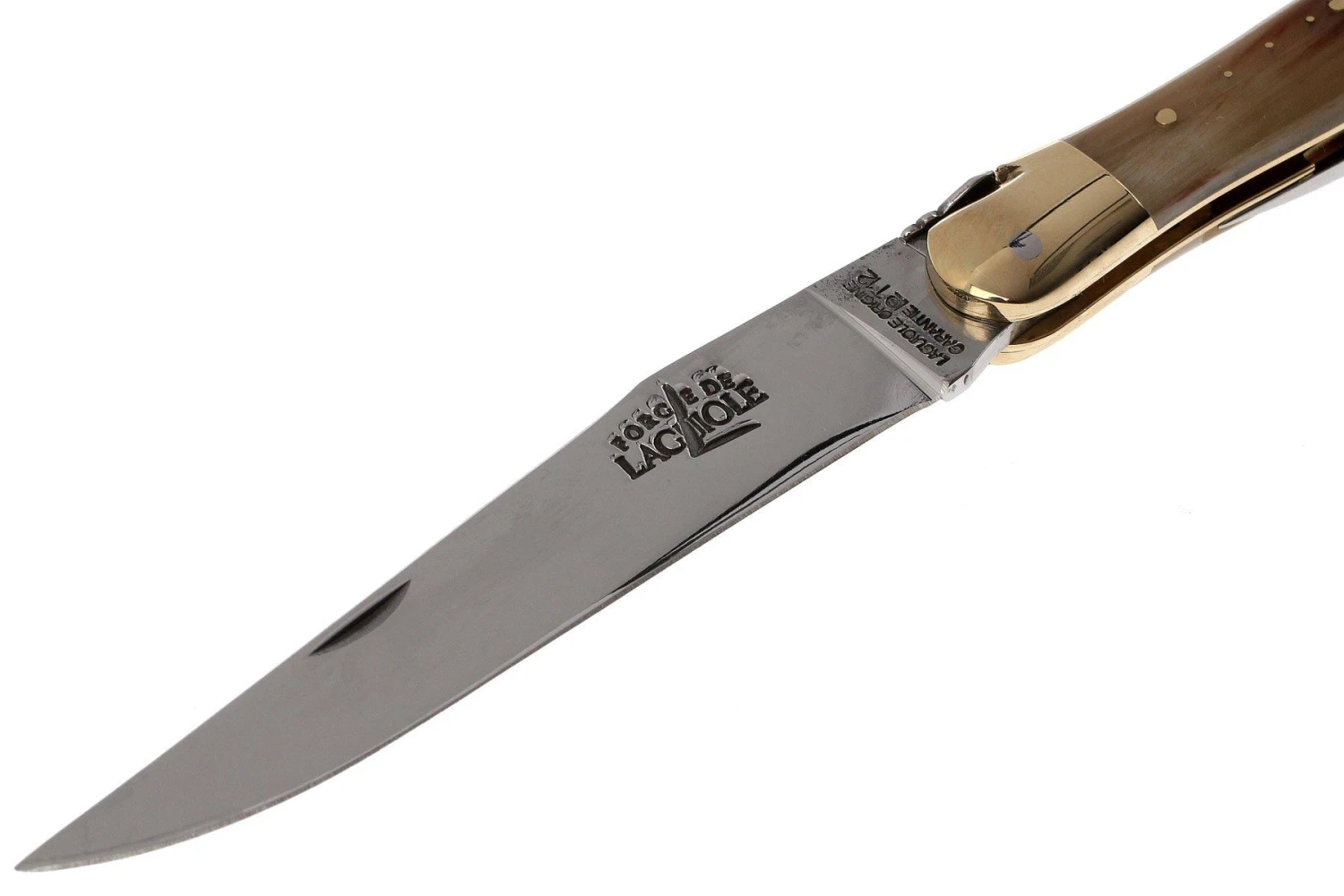 Les couteaux Laguiole de Forge de Laguiole sont faits avec amour. Ce couteau de poche français classique possède toutes les propriétés d’un couteau Laguiole : la croix du berger sur la poignée et bien sûr la petite abeille caractéristique. Ce couteau de poche artisanal a une apparence mince. Grâce au travail manuel et aux matériaux naturels, chaque couteau est unique. Ce couteau pliant à la main semble mince et gracieux, bien que pas vraiment petit. Couper une baguette française est très facile et votre bouteille de vin peut être facilement ouverte avec le tire-bouchon qui y est attaché. Que demander de plus?