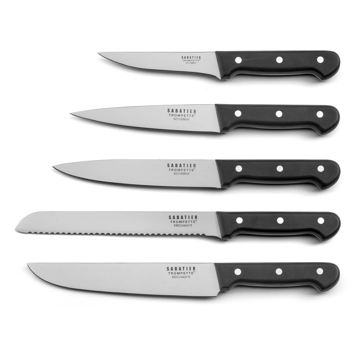 La marque Sabatier Trompette est née au début du 18ème siècle dans le bassin de Thiers, capitale de la coutellerie en France. Les gammes de couteaux de la marque Sabatier Trompette répondent aux usages spécifiques de la préparation culinaire. Forme de la lame, ergonomie du manche, faible poids et parfait équilibre sont étudiés afin d’obtenir des outils parfaits pour les Chefs amateurs ou confirmés.